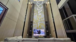 Ruang keluarga pada foto ini memancarkan kemewahan yang berkelas melalui desain interior yang tinggi, bersih, dan simetris. Konsep modern luxury terasa kuat dari permainan material, pencahayaan, dan proporsi ruang yang megah. Kesan pertama y ...