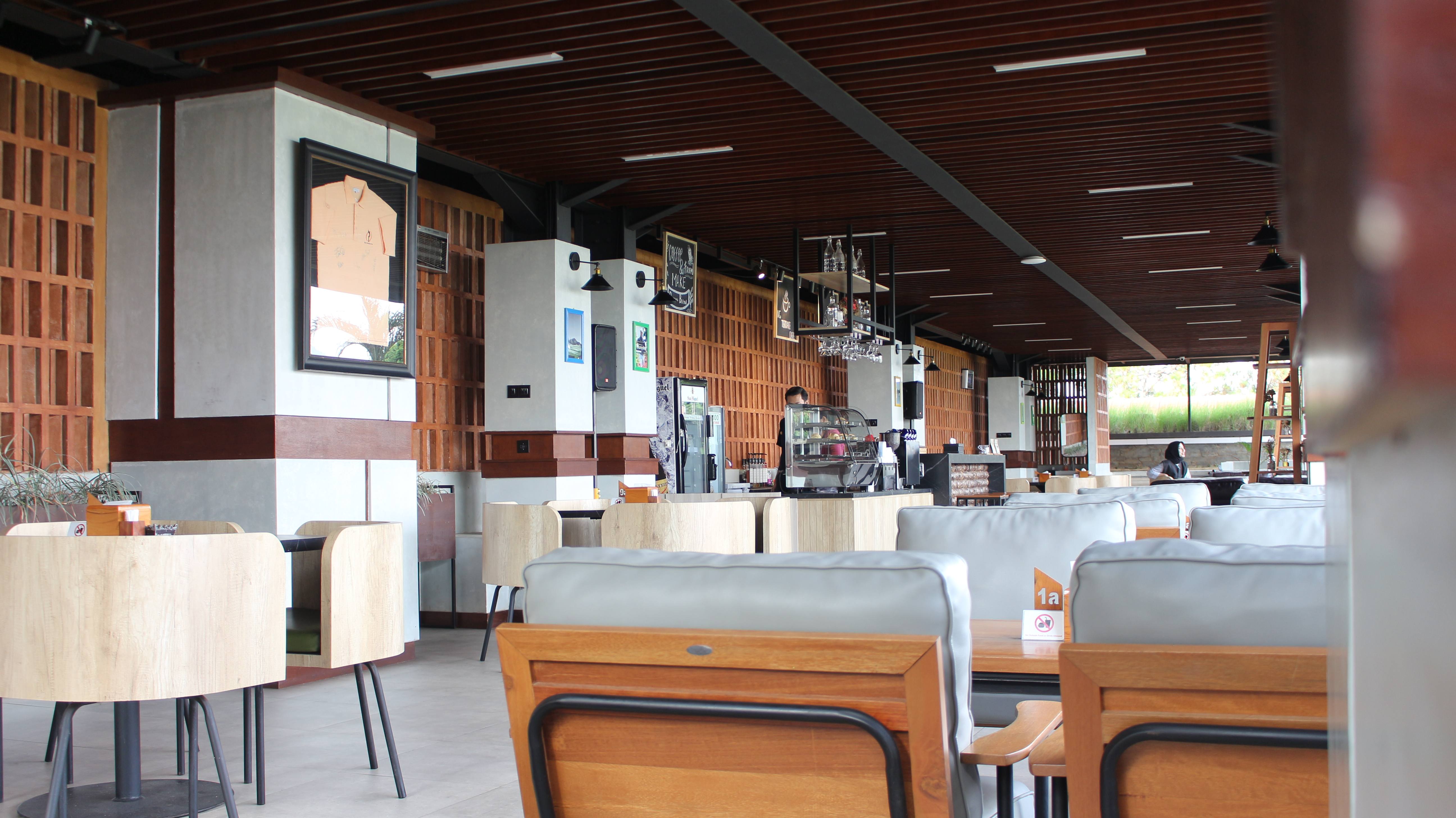 Restoran di kawasan Jatinangor National Golf ini menampilkan perpaduan desain modern dengan sentuhan tropis yang hangat dan terbuka. Desain interiornya mencerminkan karakter tempat yang dekat dengan alam, menghadirkan suasana santai namun tetap elegan — cocok sebagai tempat bersantai setelah bermain golf atau sekadar menikmati hidangan di tengah udara sejuk Jatinangor.